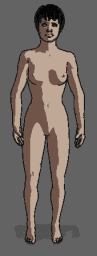 ■手の長さ。あまりビンと伸ばすことはないのだが、それでもひじとへそ、手首と股下高さに注目してバランスよく描く。