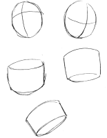 まじめに円柱の影をつけてもつまらないものです・・・。デッサンといってああいったものをたくさん描かせるのはイマイチ面白さにかけるのであまりやらせたくないのですが、これぐらいのレベルで結構ですから簡単な立体を描いてみましょう。
