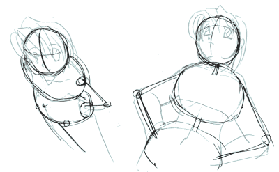 ということでまずは3つの塊・・というかブロックを紙に描いてそれを背骨でつなぐ感じでいろいろ描いて見ましょう。